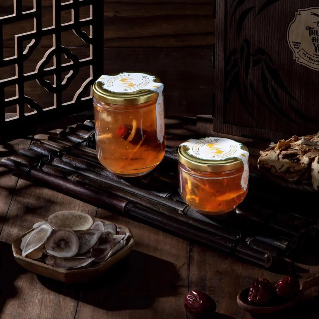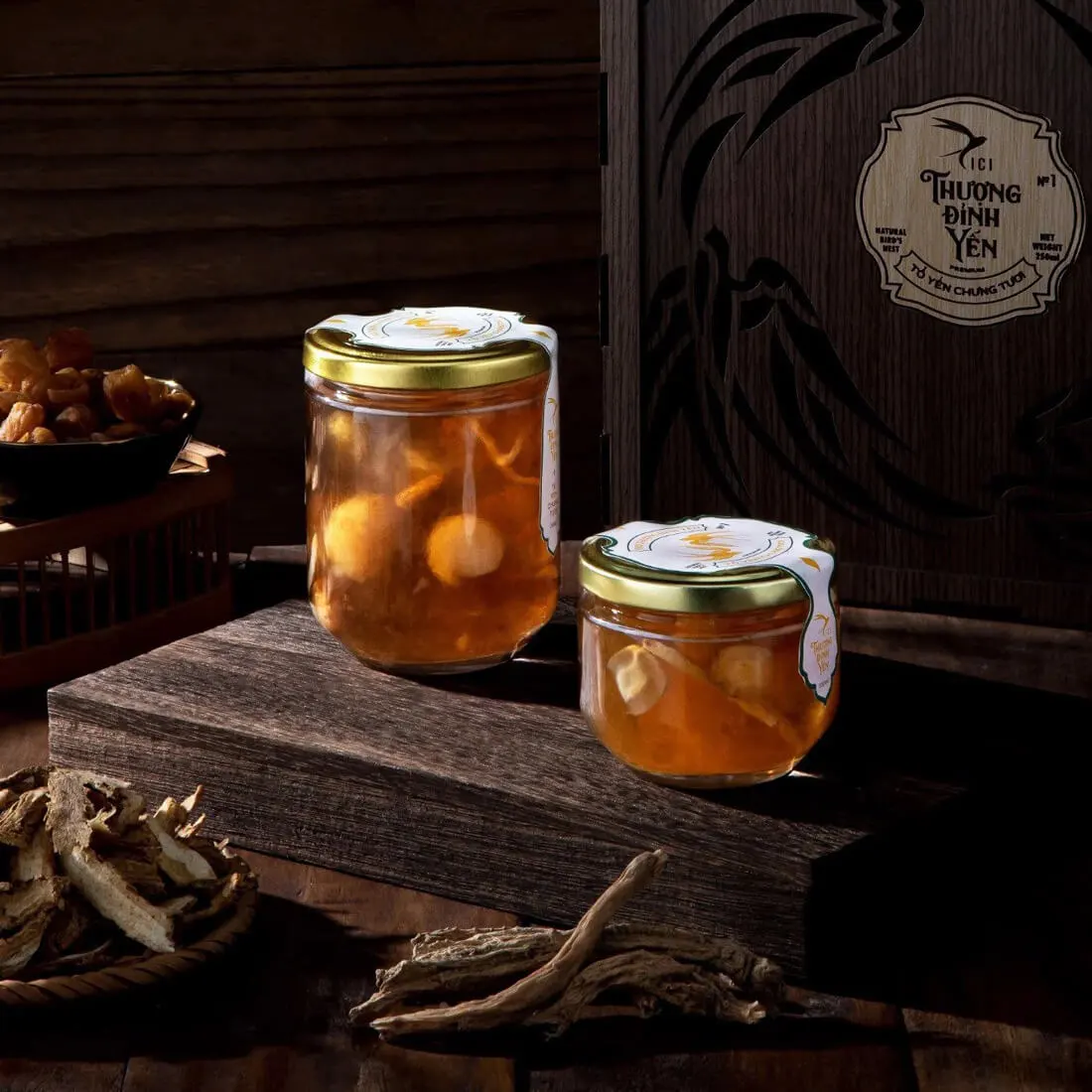 Sản phẩm được đựng bằng hũ thuỷ tinh tiệt trùng và hút chân không cùng túi giấy bên ngoài.